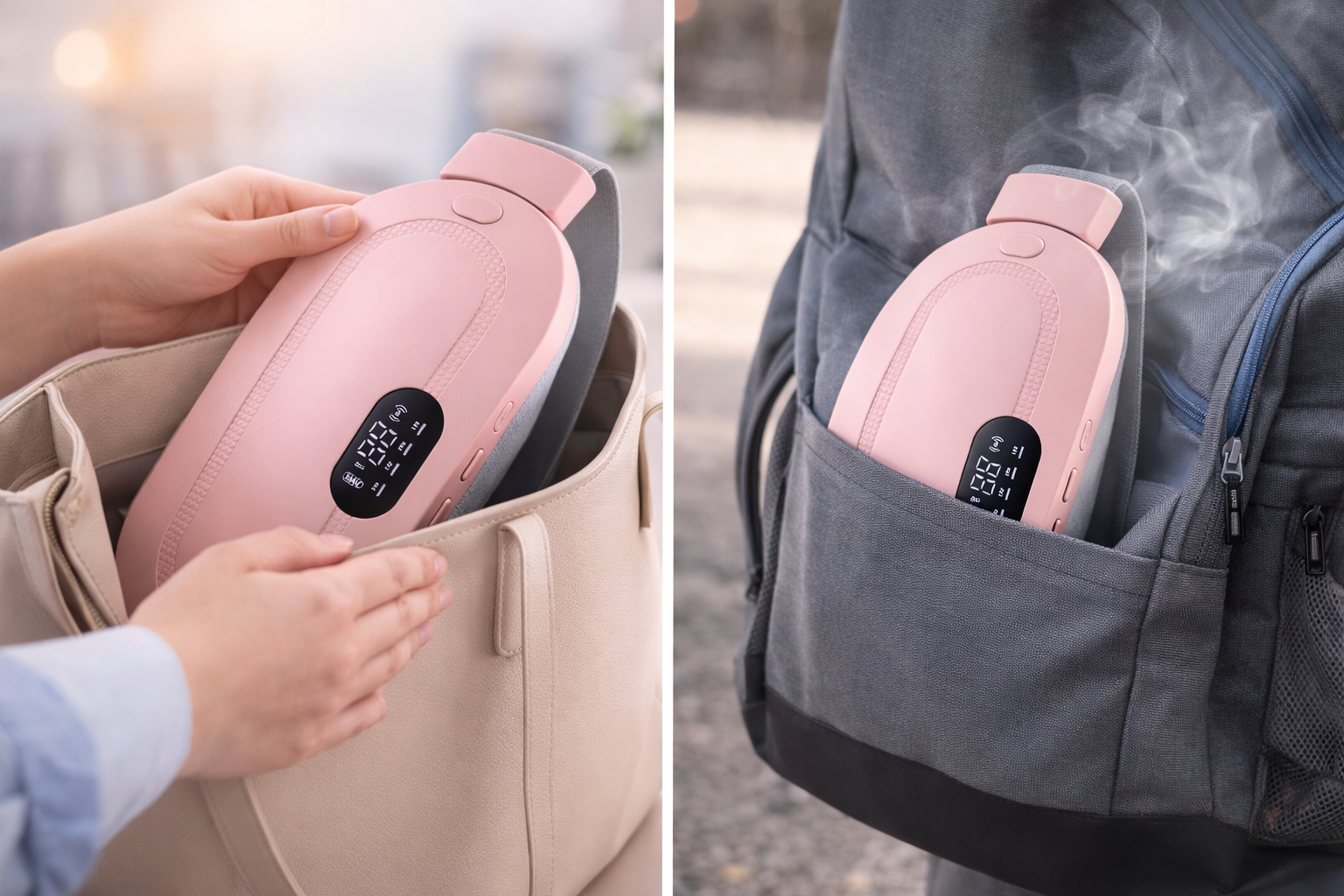 Grâce à son format compact et rechargeable, la ceinture Calmyra se glisse facilement dans un sac et vous accompagne partour